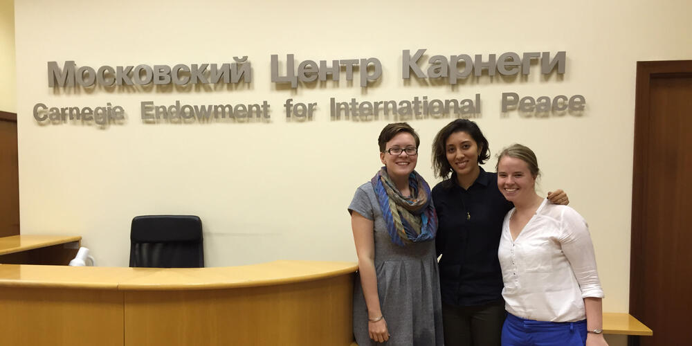 Two months after graduating from Wellesley, I began a year-long program as a Junior Fellow in the Russia and Eurasia program at the Carnegie Endowment for International Peace, a prominent global affairs think tank in Washington DC. Thanks to the Russian Department's new internship program, I was able to spend the two months before my fellowship began working as an intern at the Carnegie Moscow Center, which was great preparation for my time in Washington. My time in Moscow allowed me to get familiar with Carnegie as an organization and to get to know my Russian colleagues, who I've continued to work with since beginning my fellowship. As a Junior Fellow, I work primarily as a research assistant to the scholars in the Russia Eurasia program, researching everything from Russia's military intervention in Syria, to trade partnerships in the Black Sea region, to glacial melt in Tajikistan. I also have been able to take part in some events both at Carnegie, where I was able to see the presidents of Armenia, Georgia, and Kazakhstan speak this year, and at other institutions in DC on issues related to Russia and Eurasia. I am also able to collaborate with Carnegie experts on my own writing projects, putting the writing and analytical skills I developed at Wellesley to the test. The Junior Fellows program has given me invaluable insight into both life and foreign policy work in DC and has helped me shape my own goals and plans for the future.