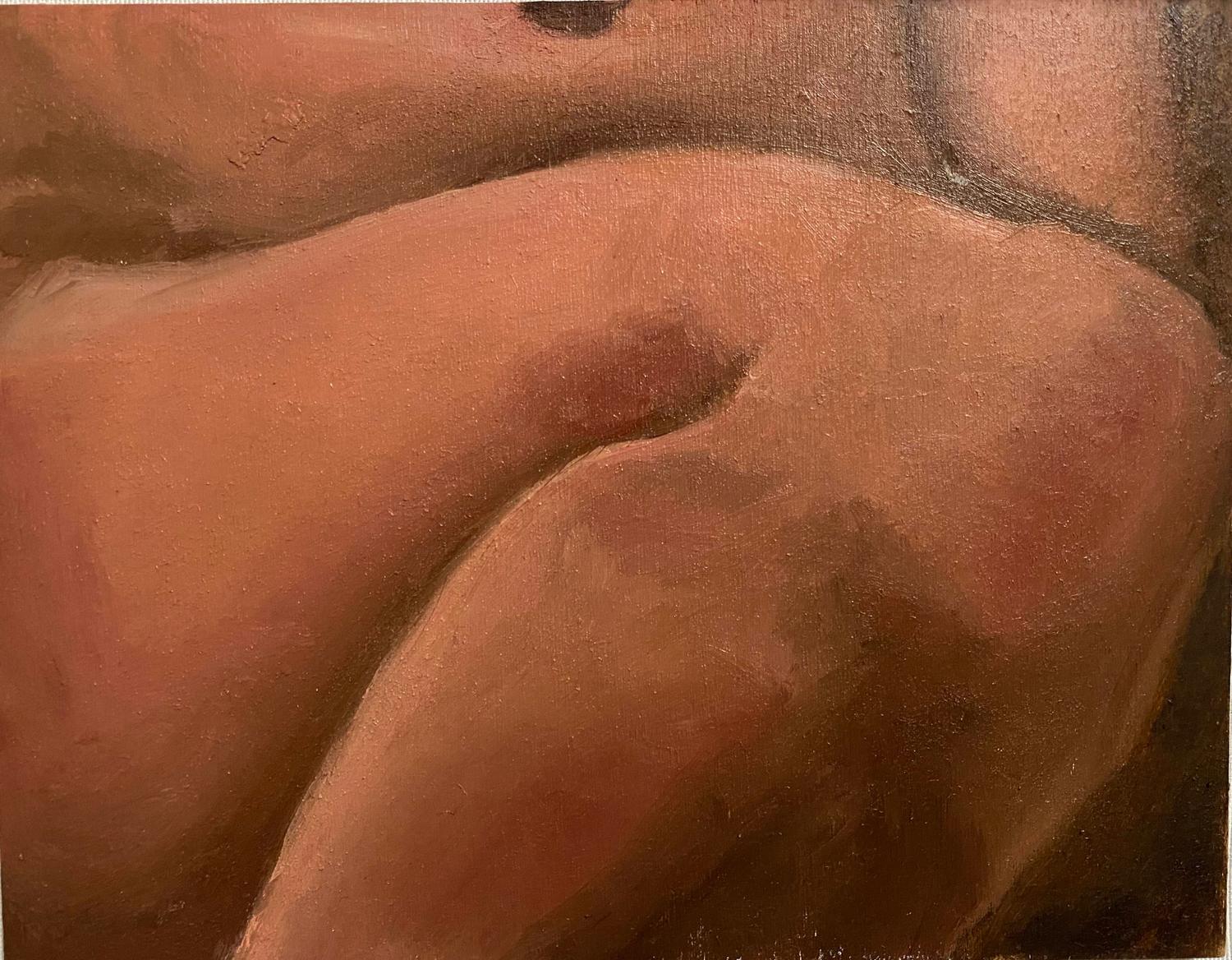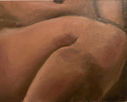 This project is an assemblage of figurative paintings and drawings seeking to examine the body and my ability to represent it. I began as a flat painter experimenting with the planes and curves of the body as a smooth uniform surface. This allowed me to experiment with colour and form and the dependencies inherent in them. However, my work changed as my focus on flesh grew, like de Kooning's statement that ‘Flesh was the reason oil painting was invented’. My work with oil changed to become more physical and sensual. I work with the tension in paint to create the physicality of flesh while retaining the form and crevices of the body and the folds of skin. I apply paint in heavy layers so that it behaves like flesh in the sense that it can be pulled and pushed in the similitude of the body.