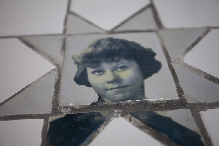 The main component of their project is rooted in the recreation of their kitchen table. First made by their aunt in the 1970s, pitkin uses the table's physical form as a base on which to emphasize the history and legacy of southern women in their family. Printed atop the tiled surface of the table are images of pitkin themself, their mother, Hope Nicholls, her sisters Gail Nicholls and Jane Nicholls White, and their grandmother, Gertrude "Scotty" Nicholls. Acting almost like a family tree, this piece provides a tangible space to exhibit the multiple generations of life in the South, and allows them to interact across temporal boundaries.