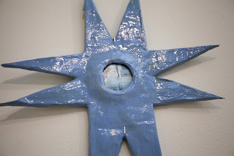 archival inkjet print, glass, cardboard, papier mâché, acrylic paint, polyurethane