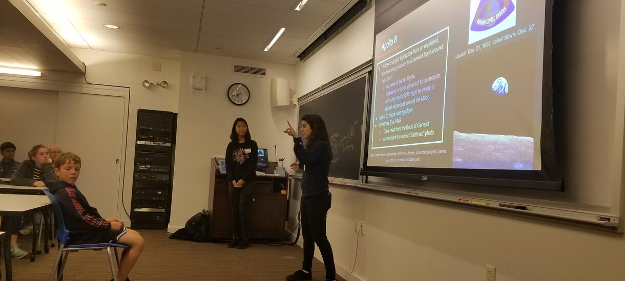 The students got to engage the public in a variety of activities focused around the Moon and the Apollo missions, including: telescope observing, a talk about the Apollo missions, and various activities about the phases, craters, and surface of the Moon.