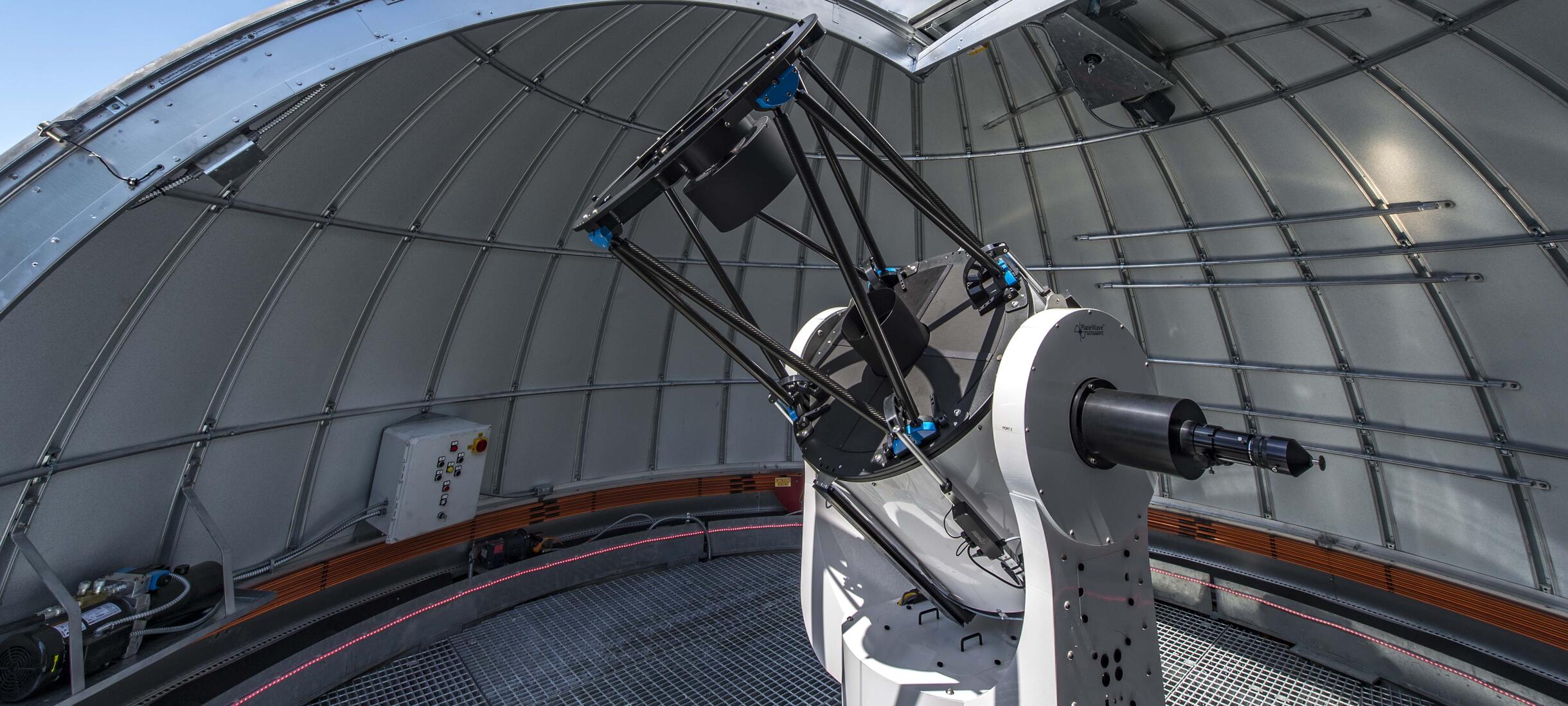 It has a 0.7-m diameter primary mirror and an effective focal ratio of f/6.5. Its dual Nasmyth ports allow us to mount our imaging CCD on one side and an eyepiece or spectrometer on the other side.