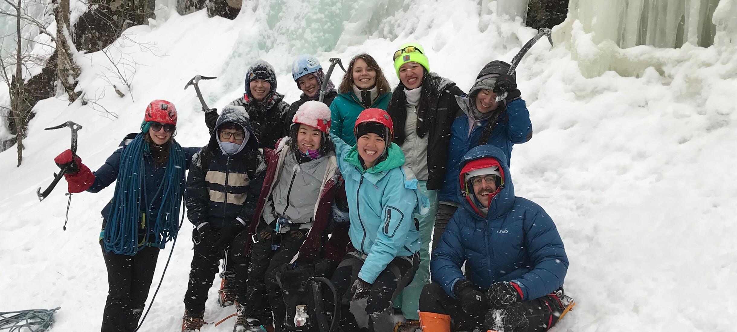 PREREQS & LEARNING OUTCOMES: Students are expected to be belay-certified at the Wellesley climbing wall - Students will learn basic ice-climbing technique, including crampon use, ice tool use and climbing movement - Students will practice layering techniques for safely staying warm and dry in the backcountry.