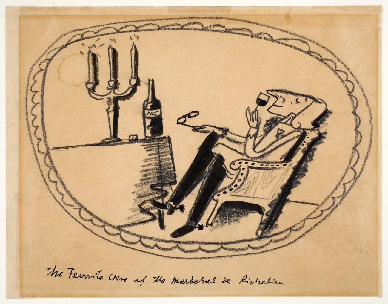 Ludwig Bemelmans, The Favorite Wine of the Marechal de Richelieu, 1936. Graphite and ink, sheet: 8 1/2 in. x 11 in. (21.6 cm x 27.9 cm). Bequest of Merrill Millar Lake (Class of 1936). 1980.53