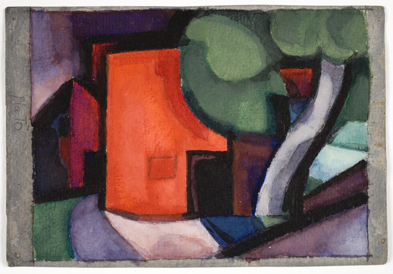 Bluemner, a German-born architect and painter, moved to the United States in 1892 and under the direction and patronage of Alfred Stieglitz abandoned commercial architecture to focus solely on his painting in 1910. As we learn from his writing, Bluemner believed in the extraordinary power of the familiar landscape. He wrote, “I prefer the intimate landscape of our common surroundings [for] we carry into them our feelings of pain, and pleasure, and moods…I am able to let the simple objects of a scene, a house, a tree, a sky or water be my actors.” Though his work is quite abstracted at times, he never entirely betrays these familiar visions. Rather than create an abstract painting representing his pure feeling at viewing a landscape, Bluemner instead represents the landscape as he saw it but formed in such a way, through the use of line and color, as to impart to the viewer the exact sensation that inspired the work. In this way, the viewer is able to recreate what the artist felt, a process that Bluemner believed abstract artists often kept from viewers.