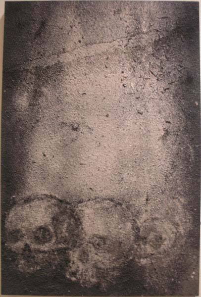 Huan’s return to China and the commencement of his ash series represented a move away from the powerful performance art that characterized his earlier work and toward experimentation in object-based media. Nonetheless, many of the same themes are at play in this later body of work. The canvas, rather than the body, becomes the site where struggles between the individual and the collective, history and memory, identity and spirituality occur. Huan creates images of historical events, people, and earthly symbols, like the skull found in the Davis Museum’s painting, that are haunted by the spiritual practice and the individual and collective memories carried in the ash that has been used to create them. Huan’s art often deals with the construction of a cultural identity in the face of the Cultural Revolution, which attempted to erase the collective memory of the Chinese people and has caused a generation to suffer as a result of the disjunction that exists between personal memory and official record. By creating singular images, like the skull, from thousands of individual particles of ash, he attempts to restore spiritual and emotional life, as well as an individual and collective memory to this generation. The blurred contours and illusive forms of the work fight against the notion of a singular accepted history, at the same time that they celebrate the fragmented, yet united, memory of a people.