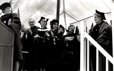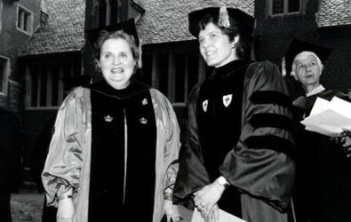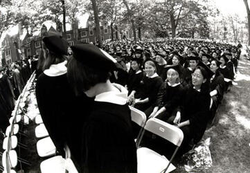 Addressing the graduates, their friends and families, and the Wellesley community were Jennifer Harmon, student speaker; Ambassador Madeleine K. Albright; and Wellesley College President Diana Chapman Walsh.