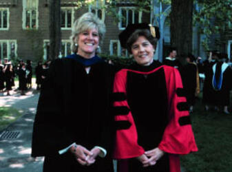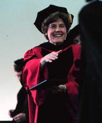 Addressing the graduates, their friends and families, and the Wellesley community were Colby Lenz, student speaker; Lynn Sherr '63, ABC News 20/20 correspondent, author and commencement address speaker; and Wellesley College President Diana Chapman Walsh.