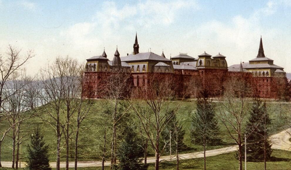 When Wellesley opened in 1875, to all eyes it was magnificent. Erected on the rise above Lake Waban, its single building was surrounded by 300 acres of a country estate with varied terrain of hills, woods, meadows, and water. The building itself was of immense size. At 475 feet in length, and rising four stories with five-story towers, it was one of the largest buildings in the United States at its opening. And it was exactly as [founder Henry] Durant wanted it—the perfect expression of the College Beautiful.