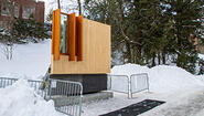 Mock-up panels of a proposed exterior finish for the Pendleton West renovation project offer a sneak peek of what the building may look like when it is completed. A reimagined Pendleton West will provide greater opportunities for students, faculty, and staff engaging with the arts.