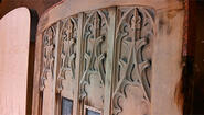 More than 20 layers of paint and primer were stripped from two Green Hall entry doors to prepare them for repair and refinishing. The doors will be reinstalled this fall.