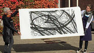 Students in ARTS 322 Advanced Print Concepts held an alternative printmaking event on the Davis-Jewett plaza in late October. The event allowed them to explore larger format printing.