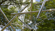 Jennifer Lyon-Mackie ‘18, a student assistant in the public affairs office, captured a photo of Kenneth Snelson's Mozart III with sunlight streaming through. The sculpture was first installed on campus in July 2008.