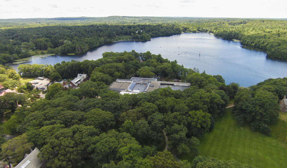 This bird’s eye view of the Margaret Clapp Library and Lake Waban, taken from the top of Galen Stone Tower, makes one wonder, “What am I looking at?”
