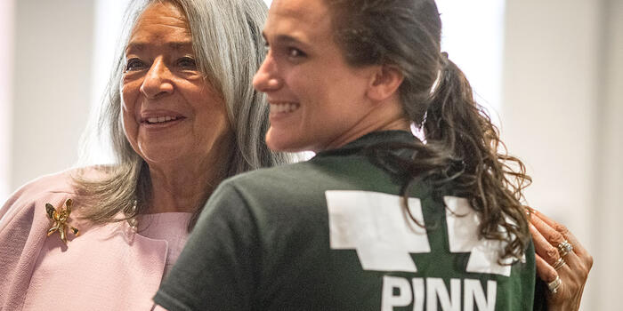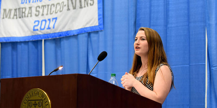Monday, October 16, 2017Wellesley honored Maura Sticco-Ivins '18, a three-time NCAA National Champion Diver, during the annual Blue Nation Pasta Dinner.