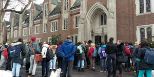 Tuesday, February 21, 2017Students, faculty, and staff gathered for a rally organized by the Wellesley Latinx advocacy group Raíz to show support for the rights of undocumented and Muslim immigrants and refugees.