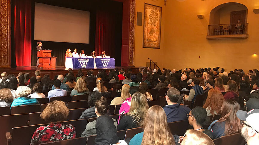 Joy St. John, dean of admission and financial aid, leads a panel of current students and alumnae during Discover Wellesley Weekend as over 400 visitors listen. The conclusion to A Very Wellesley Weekend, Discover Wellesley allows prospective students the opportunity to go to classes and panels, and take part in the surreal bonding experience that is spending the night in a Wellesley residence hall with a current student. Discover Wellesley Weekend is integral to the college search process for many students; nearly 80 percent of the 2017 attendees decided to apply to Wellesley.