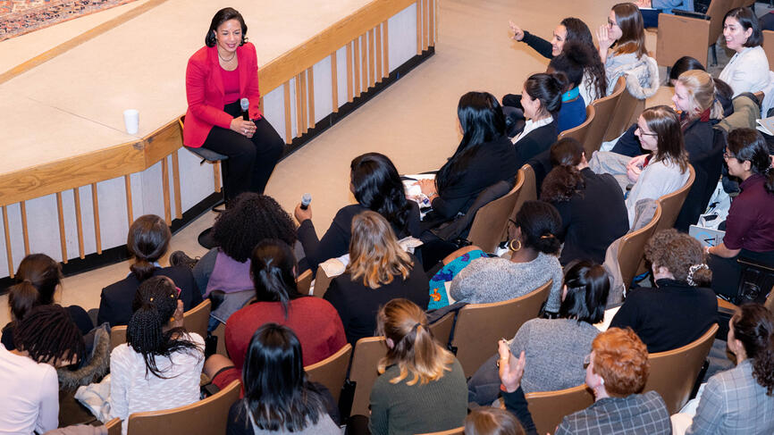 Wellesley welcomed Ambassador Susan Rice on January 9 for a public talk titled “Tough Love and the Things Worth Fighting For.” Afterward, the fellows met Rice and asked about her experiences as former national security advisor to President Obama and former U.S. ambassador to the United Nations. Photo: Kelly Fitzsimmons