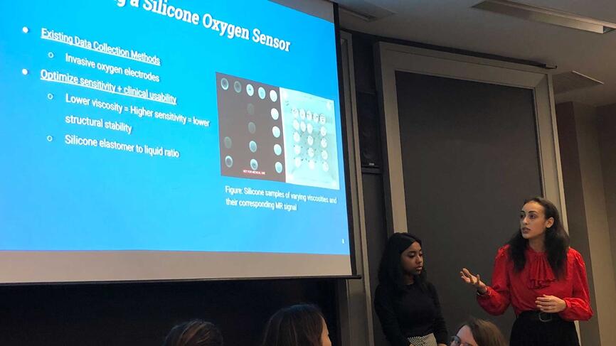 For Freedman, “It was truly inspiring to lead a project that would hopefully improve the treatment of specialized cancer patients.” In the lab, she made silicone formulations with various viscosities that were analyzed by the Brigham and Women’s Hospital’s MRI facility. Data from MRI scans using those formulations allowed her to “create a silicone sensor that, when implanted in a patient's tumor, would be able to detect the quantity of oxygen within the tumor cells.” Oxygen levels indicate a tumor’s malignancy, so “this silicone sensor and the ability to manipulate its sensitivity could be really helpful for diagnosing and treating different cancers,” she explained.