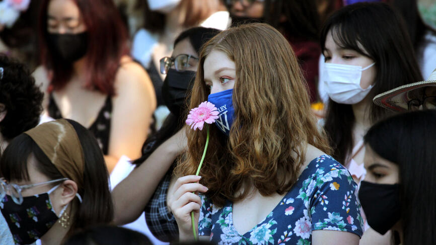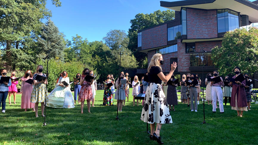 Students who attended Flower Sunday festivities heard performances by the Wellesley Choir, listened to student speeches by Anisha Rao ’23, Aisling Novick ’23 and Sarwa Shah ’24, and received a blessing from Chaplains Dena Bodian, Amira Quraishi and Sarah Robbins-Cole.