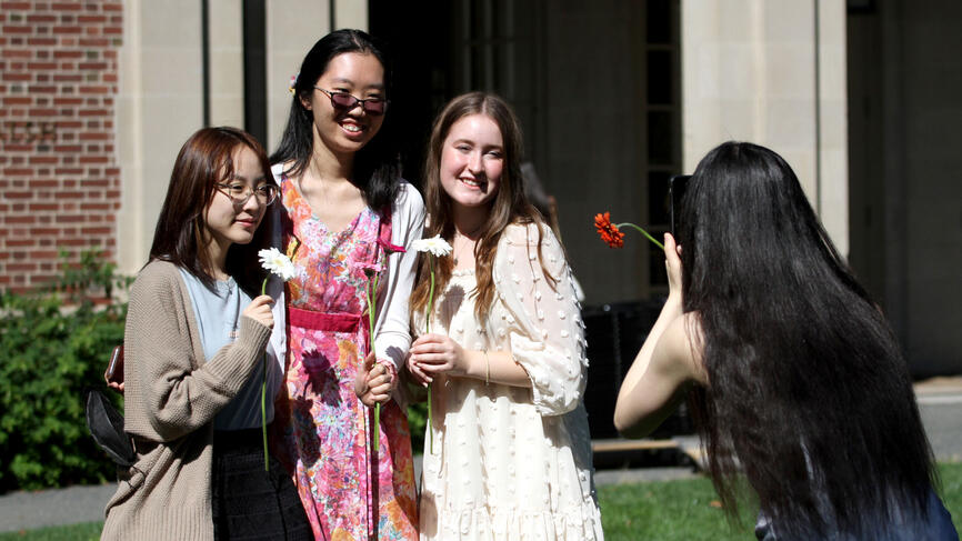 On September 19, students gathered in the Hay Outdoor Theater for Flower Sunday—the oldest tradition at Wellesley. Hosted by the Office of Religious and Spiritual Life, the first-year “littles” are paired with “bigs” from the older classes, who bring them bouquets of flowers or small gifts. Then they attend Flower Sunday festivities together, which include performances by the Wellesley choir, speakers, and a blessing. The event is followed by brunch, where bigs and littles have the opportunity to get to know each other more