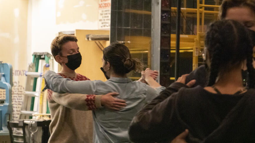As a creative assignment, González asked his students to revise a scene from the stage production and set it in contemporary America post-9/11. Marty Martinage ’24 and Phaedra Plank ’24 rewrote the song “Two Ladies” and created a satire called “Two Cowboys.” Their version traces the shift in the culture of country music and highlights the influence of queer communities and communities of color in country music that have often been erased from popular culture.