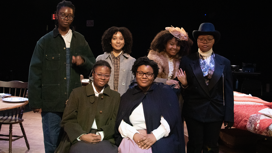 Kiya Watson ’25, who plays Miss Leah, says Flyin’ West has been a great experience for her. “Theatre is something I’ve always wanted to get into on Wellesley’s campus, but I didn’t really see that many people on stage who looked like me,” she says. “Flyin’ West gave me the opportunity to be around Black creatives and get more involved.”