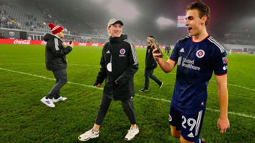 Through her former Detroit City FC boss Reckley learned about the social media coordinator position for the New England Revolution. She applied and got the gig, starting in July 2022. Now Reckley gets paid to share her enthusiasm for soccer. “I love getting fans hyped up about the New England Revolution,” she says. Alongside the team’s social media manager and one other social media coordinator, Reckley works on all aspects of the Revolution’s internet presence––Instagram, Threads, TikTok, Facebook, YouTube, and X (better known as Twitter)––though her main focus is the team’s TikTok videos. She has made videos that are both silly (like making the team solve math riddles) and serious (such as the memorial tribute to childhood cancer patient and soccer fan Malia). Reckley also isn’t above putting herself in front of the camera, participating in coach Kevin Hitchcock’s notorious goalkeeper training for a YouTube video.