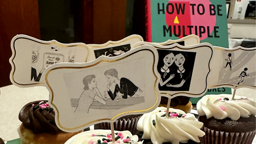 At the November 8 launch event for her book on campus at the Newhouse Center, Helena talked with her identical twin, Julia de Bres—who Zoomed in from her home in Wellington, New Zealand, and who illustrated How to Be Multiple—and Tracy Gleason, professor of psychology at Wellesley and the mother of teenage twins.