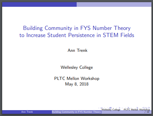 Building Community in First Year Seminar Number Theory to Increase Student Persistence in STEM Fields [Proposal] |