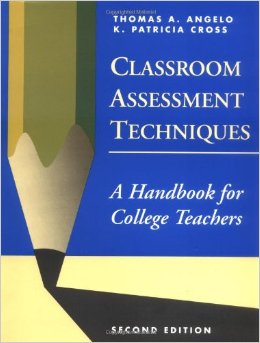 - Classroom Assessment Techniques: A Handbook for College Teachers - This handbook contains 50 assessment strategies to gauge students' understanding in the moment. Each strategy includes a description, examples from various disciplines, a step-by-step procedure for implementation, and the estimated time and effort to implement the strategy. See examples of CATs here and here.