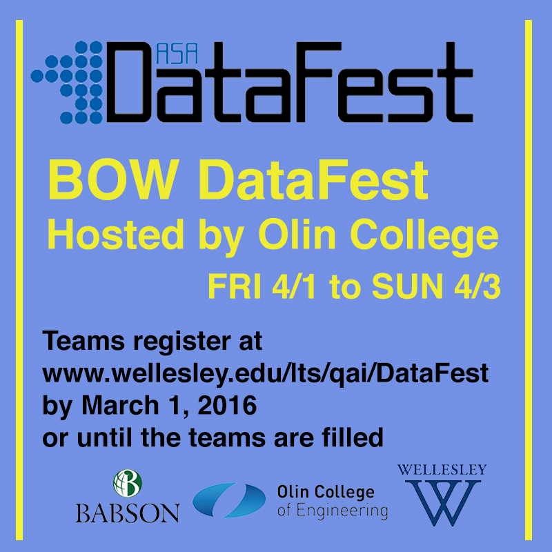 American Statistical Association (ASA) DataFest with BOW Collaboration (website, flyer)
