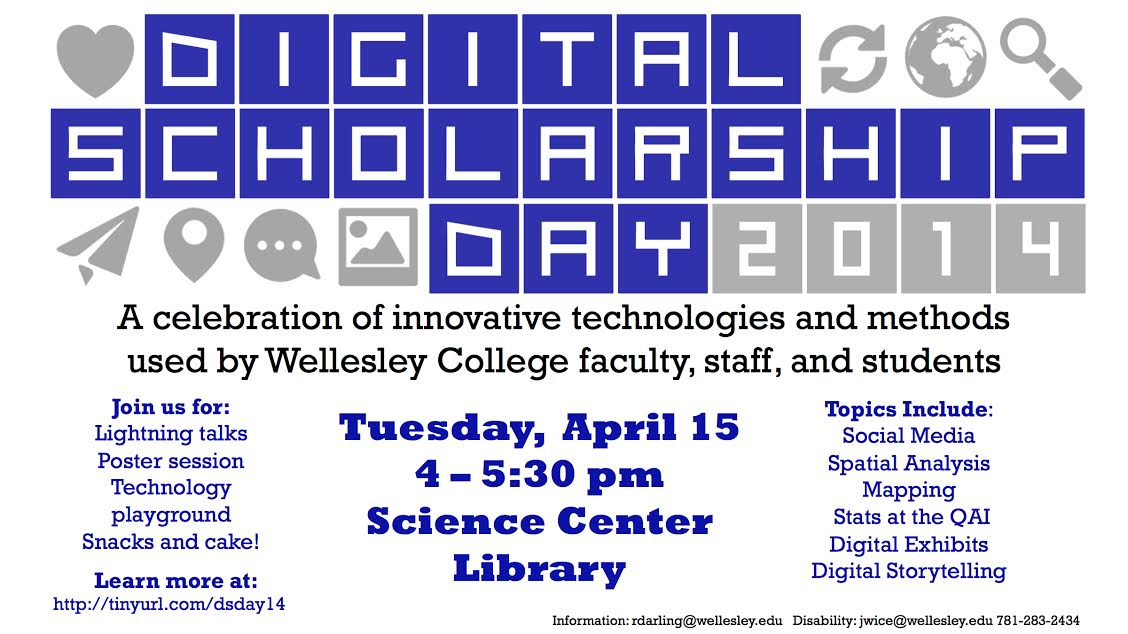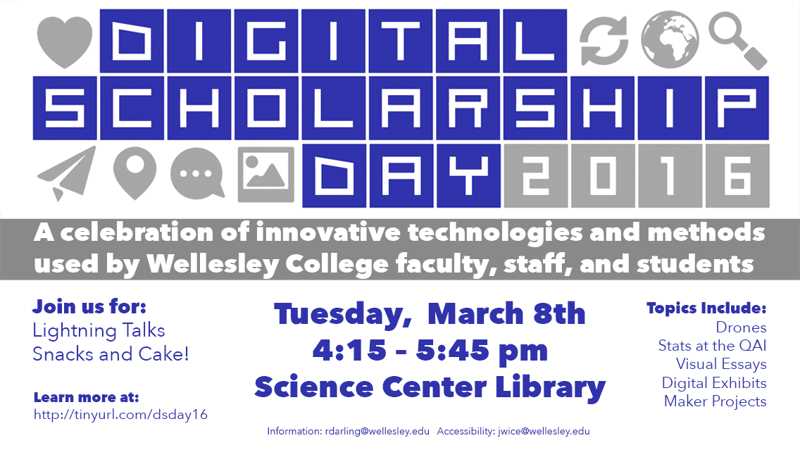 Please also join us for Digital Scholarship Day, a celebration of innovative technologies and methods used by the Wellesley College community.