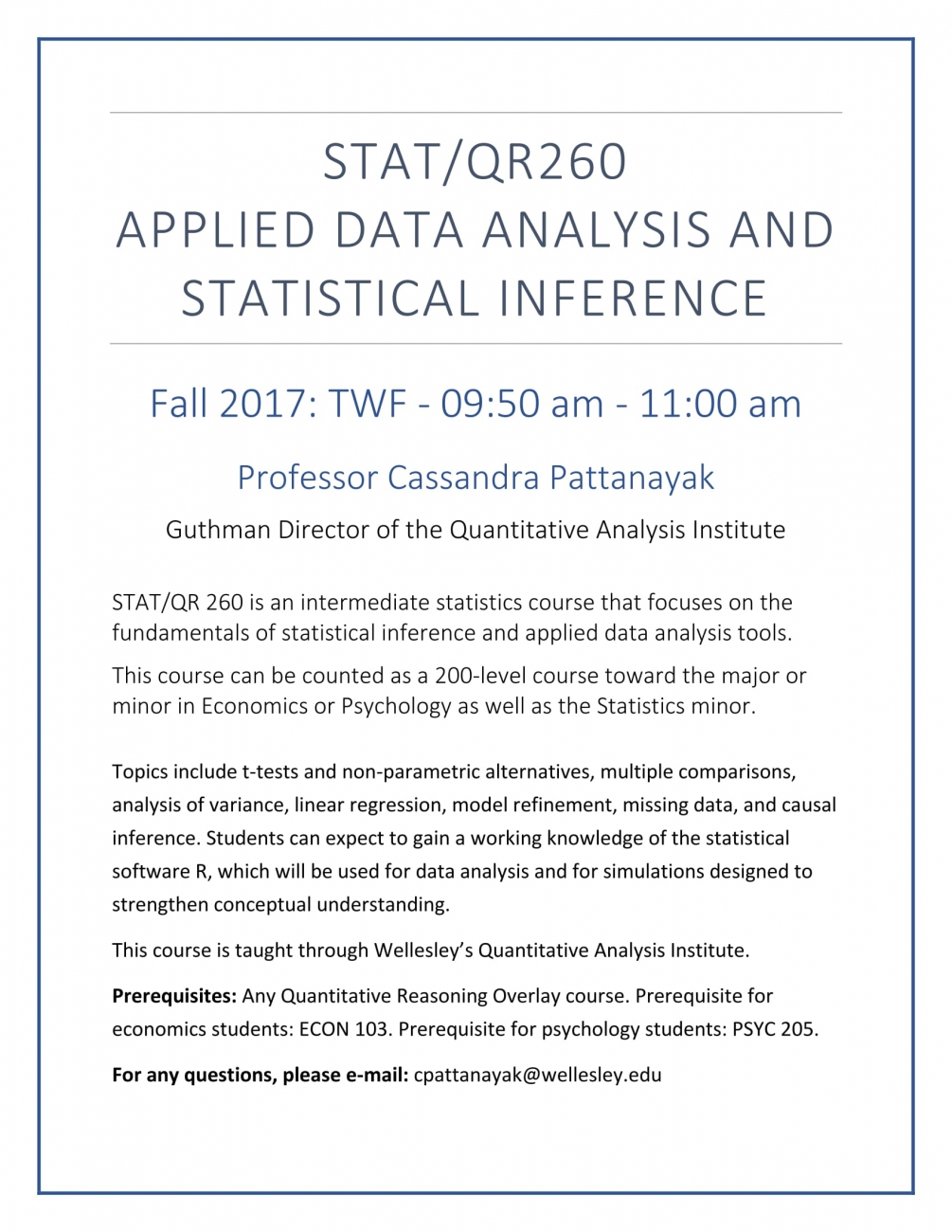 STAT/QR 260 Applied Data Analysis and Statistical Inference is offered next fall!